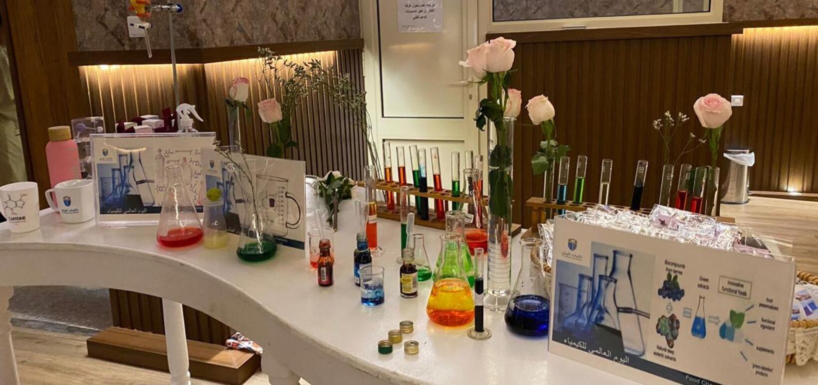 تضمّنت محاضرة تعريفية عن أهمية علم الكيمياء وتخصص الصيدلة الإكلينيكية، إلى جانب أركان تفاعلية تناولت: